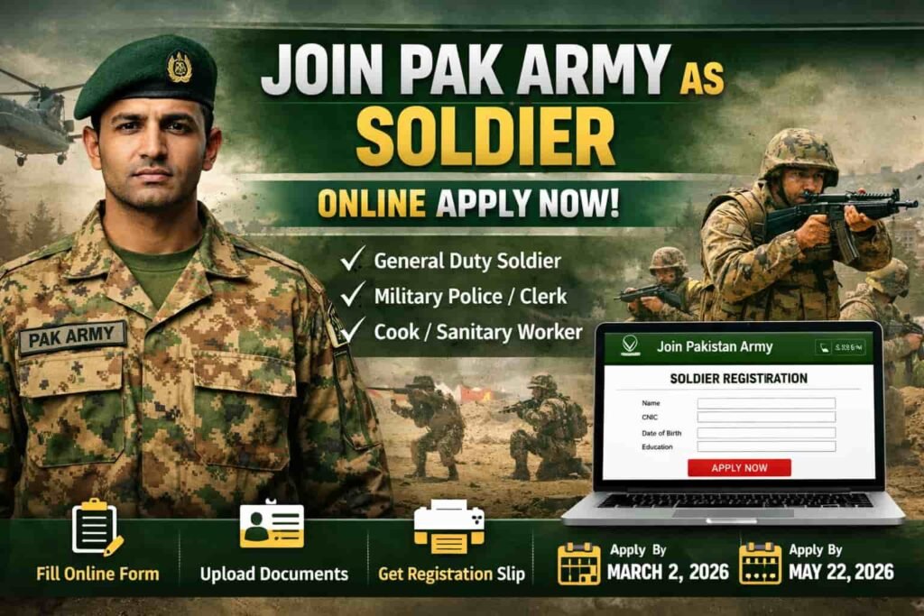 If you are searching for Join Pak Army as soldier online apply, you are likely serious about building a disciplined, stable, and respected career in 2026. In today’s competitive job market, where private sector roles are often contract-based and uncertain, soldier recruitment in the Pakistan Army remains one of the most secure and structured Jobs in Pakistan.